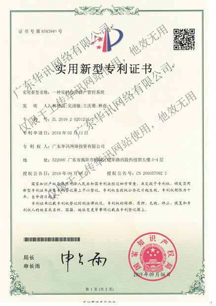 实用新型专利证书(一种实时仓库资产管控系统)