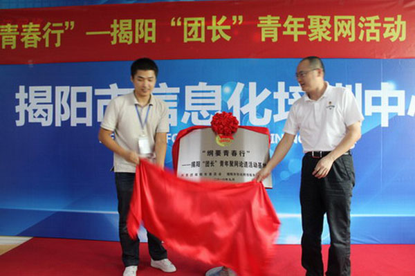 共青团揭阳市委员会江水书记,卓少琳副书记与我司林春苗经理等领导出席活动,江水书记作重要讲话,并与我司林春苗经理共同为“纲要青春心”——揭阳“团长“青年聚网论道活动基地牌匾揭牌。