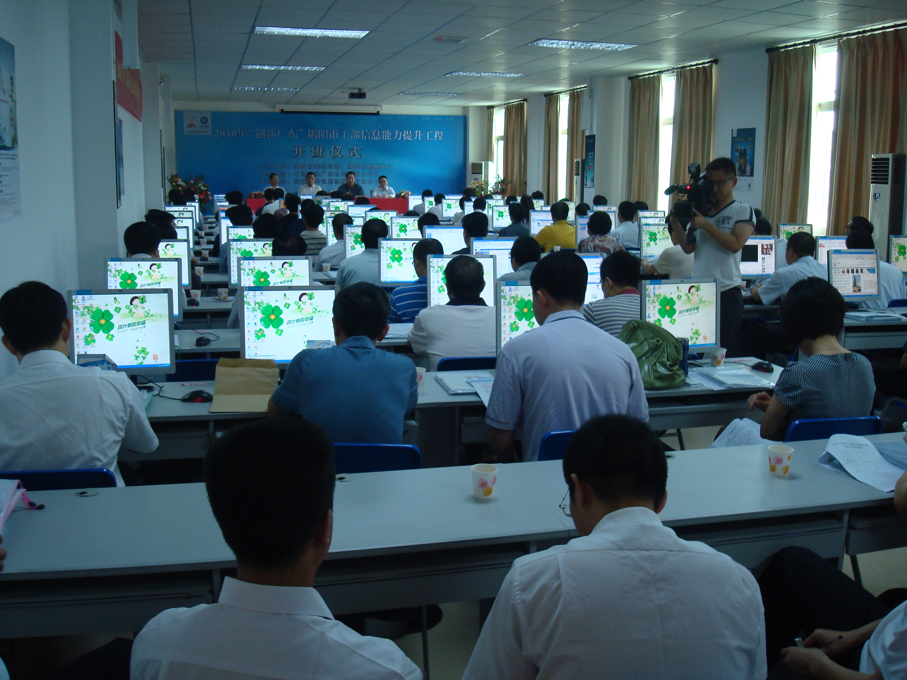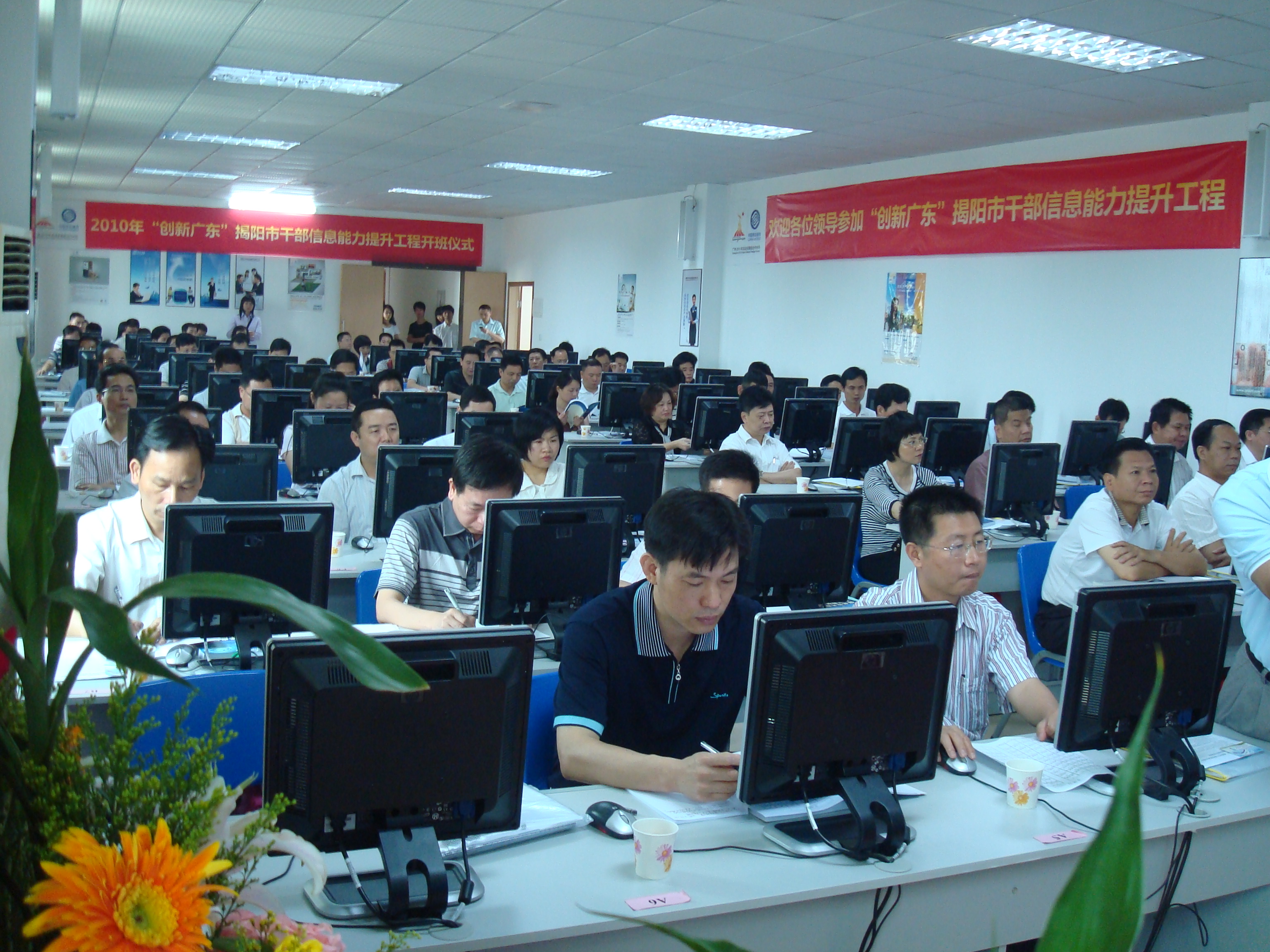 根据广东省委组织部《关于实施干部信息能力提升工程的通知》要求,市委组织部、市信息中心决定从2010年5月份到2011年4月份,用1年时间完成全市干部信息能力培训和考试工作,同时决定将此项工作委托我公司负责承办。参加第一期培训班的学员共80名,是来自市直各单位的副处级以上干部。